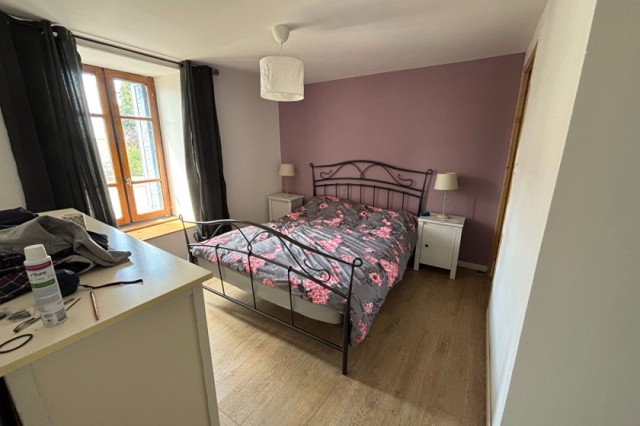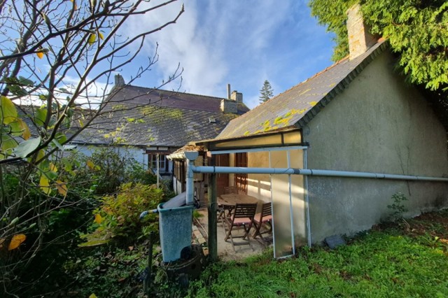 Spacious village house with garden for sale less than 10 minutes from Josselin and Ploërmel. It offers generous rooms, including a large living/dining room, a fitted kitchen with dining area, an office, three bedrooms (two with en-suite shower rooms), and a further bathroom. An attic and a large storage room offer potential for further development. Parking area and private garden at the rear, covering approximately 463 m2. A lovely house for a nice family! (6.50 % fees incl. VAT at the buyer's expense.)